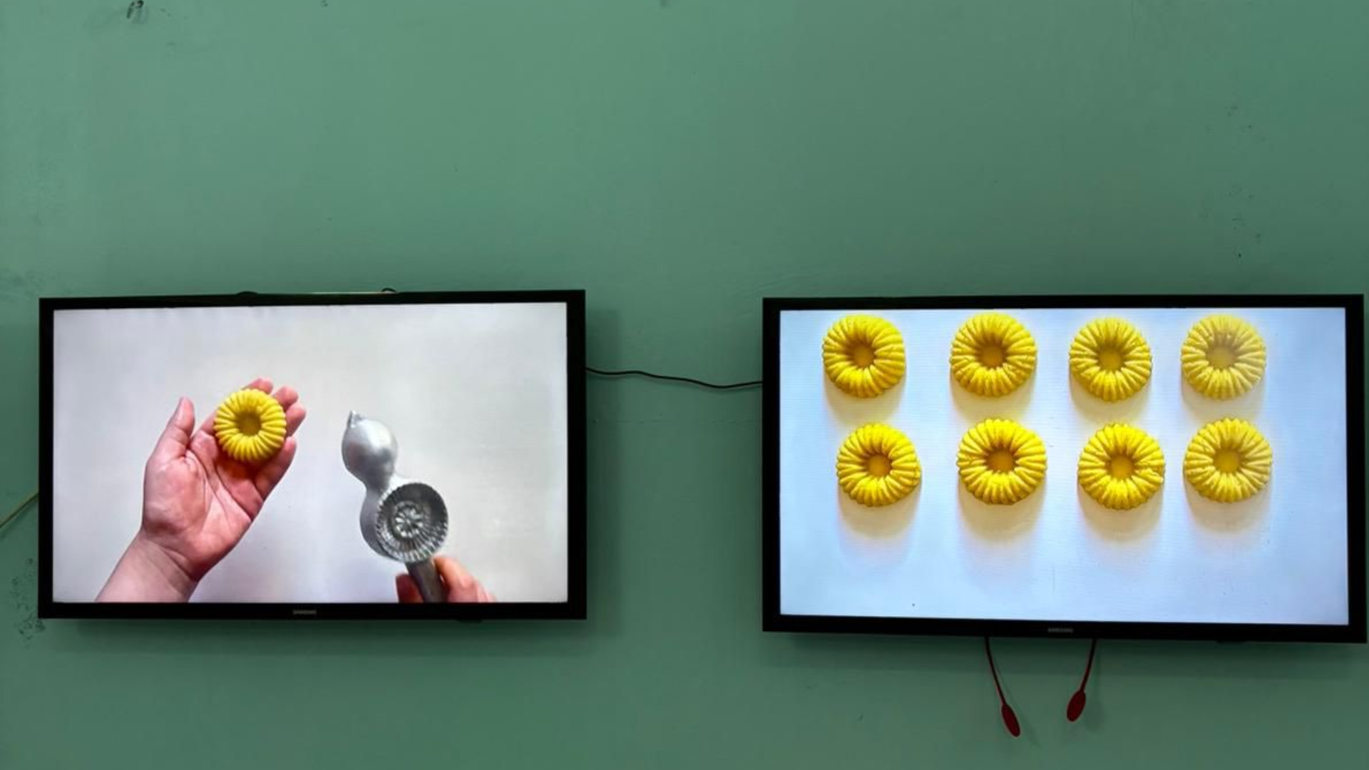 معمول "إنتِ مش زَي خواتِك": يسأل هذا الفيديو فيما اذا كان تماثل حبّات المعمول يعتبر دليلًا على براعة الصانع؟ أم على قوة القالب ومحدوديّة خياراته؟ وإن كانت دقّة الشكل وتكراره ميزة في حبّات الحلوى؟ هل يمكن اعتبار تكرار النُسخ إنجازًا داخل الصف؟ والمدرسة؟ وعبر الأجيال؟
