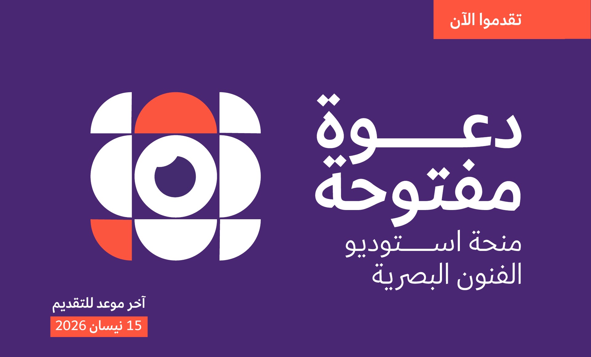 تعلن مؤسسة عبد المحسن القطَّان عن فتح باب التقدم للحصول على منحة استوديو الفنون البصرية للعام 2026، التي تتيح المؤسسة، بموجبها، للفنان/ة استخدام استوديو الفنون البصرية، أو ركن معين فيه، لمدة تتراوح ما بين شهر إلى أربعة أشهر، خلال الفترة ما بين بداية تموز 2026 ونهاية آذار 2027، وذلك تبعاً لحاجته/ـا وحجم ومركبات مشروعه/ـا الفني المقترح، إضافة إلى تقديم دعم مالي جزئي للمساهمة في تغطية مصاريف أساسية ذات صلة بالإنتاج الفني والمعيشة أثناء فترة الإقامة، مساهمة منها في دعم الفنانين، والتعاون معهم بهدف تطوير مشاريعهم الفنية و/أو تحققها.