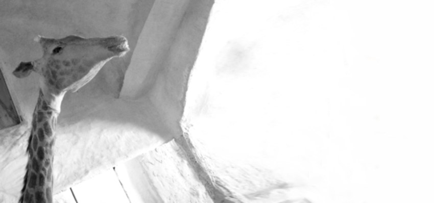 In August 2002, a giraffe called Brownie rammed its head against a light pole, fell to the ground and died in the middle of its cage in Qalqiliyah Zoo. The cause of Brownie’s panic is the raid of Israeli soldiers on the Zoo to use it as a tactical ground for attacking a nearby school with gun-shots, tear gas, and flare grenades. Ruti the partner of Brownie, aborted and lost her calf ten days later out of grief. The giraffe family was mummified by the Zoo’s veterinarian and then placed in the Zoo’s museum, which is packed with mummified animals, each has a bizarre story with death.