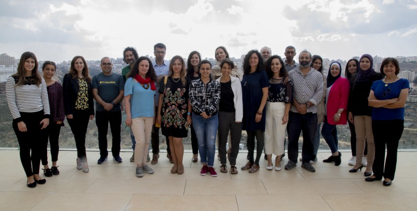 The signing was attended by representatives of the following partnering organisations: the Visual Arts Forum (Ramallah); the Khalil Sakakini Cultural Centre (Ramallah); the Palestinian Museum (Birzeit); and Dar Qandeel for Arts and Culture (Tulkarm). Also present was the General Director of the A.M. Qattan Foundation, Fida Touma; the Foundation’s Financial Director, Bashar Idkeidek; the Director of the Culture and Arts Programme (CAP), Mahmoud Abu Hashhash; the VAFF Project Manager, Yara Odeh; Project Coordinator, Eman Sharabati; Project Coordinator Assistant, Tarteel Mumamar; and the CAP team. The meeting featured an introduction to the organisations’ visual art programmes that are being supported by the VAFF project in this second round of funding, with a view to creating opportunities for collaboration and networking.