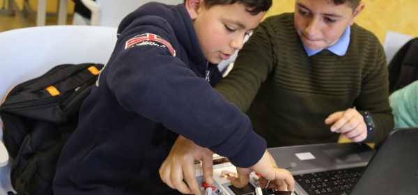 غزة: طلبة يشاركون في أنشطة برنامج "مهندسو الروبوت" في مركز الطفل