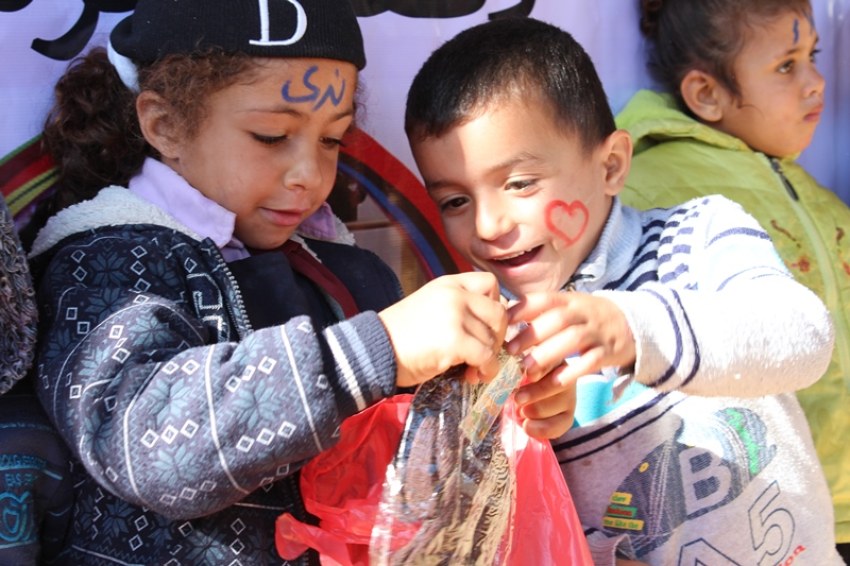 واستهدفت المبادرة عدداً من الأطفال المتضررين من المنخفض الجوي الذي لحق بالمنطقة خلال كانون الأول 2013.