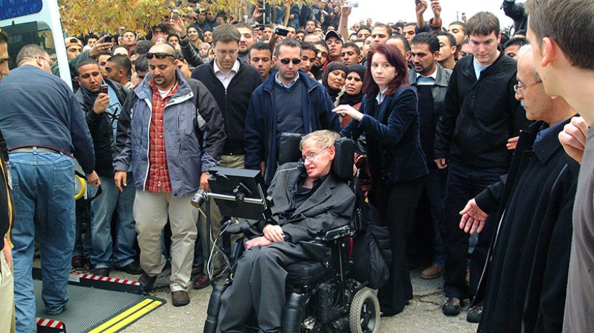 من أرشيف جامعة بيرزيت:ستيفن هوكينغ خلال زيارته للجامعة