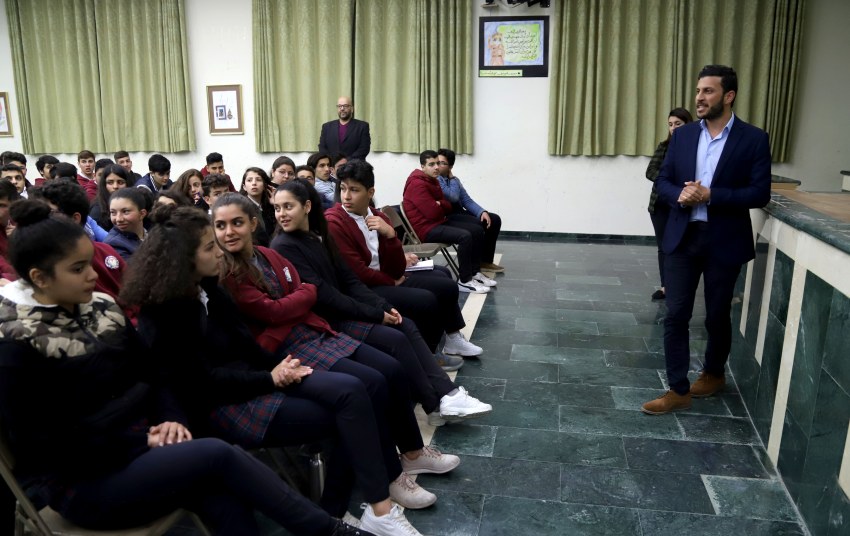 ناقش طلاب الصف العاشر في المدرسة الإنجيلية في رام الله مع الكاتب أحمد جابر مجموعته القصصية "السيد أزرق في السينما"، يوم الخميس 28/3/2019، ضمن برنامج "مؤلف في مدرسة"، الذي تنظمه مكتبة مؤسسة عبد المحسن القطان لتشجيع القراءة في المدارس.