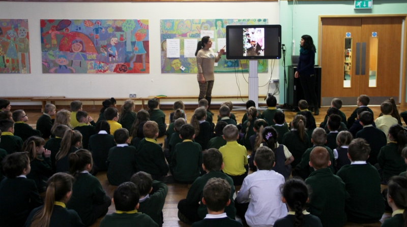 تنظّم المدرسة الأساسيّة البريطانيّة اجتماعاً يوميّاً لصفّين أو أكثر، يقام في قاعة الرياضة، تقدّم فيه الجوقة الطلابية أناشيد، أو تُعرض فيه مسرحيّات، لكنّه تحوّل في هذا الأسبوع إلى ساحةٍ تقدّم مشاهد من الثقافة الفلسطينيّة، كعرض للدبكة على ألحان الأغاني الشعبيّة، يؤديها طلبة وودرو مع "الصديقات من فلسطين" كما يسمّيهنّ مدير المدرسة ريتشارد كيران، إضافةً إلى عرضٍ لصور الأطفال في الرياض الفلسطينيّة، قدّمته المربيّات، موضحاتٍ نشاطاتٍ يقمن بها مع أطفالهنّ، كقطف الزيتون في موسمه مثلاً.
