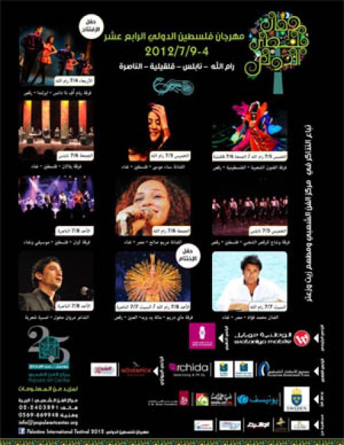 ساهم البرنامج في دعم فعاليات عدد من المهرجانات أقيمت في مدن فلسطينية عدة، واستضافت عدداً من الفنانين والفرق الفنية المحلية والدولية، منها مهرجان فلسطين الدولي الرابع عشر الذي نظمه مركز الفن الشعبي في مواقع مختلفة. كما ساهم البرنامج في دعم مهرجان القدس 2012 بتنظيم من مركز يبوس الثقافي في مدينة القدس، ومهرجان وادي الشعير الثاني للثقافة والسياحة والفنون 2012، بتنظيم من مركز واصل لتنمية الشباب في عنبتا قضاء طولكرم، إضافة إلى مهرجان نظمته جمعية الشباب الديمقراطي للتنمية في عرّابة قضاء جنين.