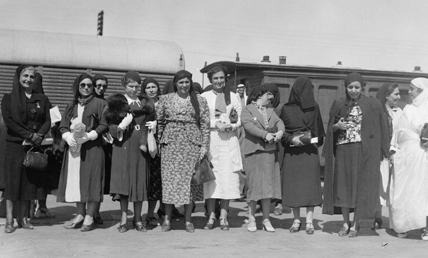 نساء في مدينة اللد في أثناء سفرهن في القطار إلى القاهرة، 1938