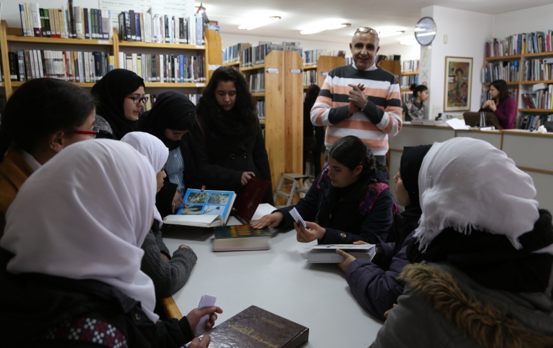 وقدّم مدير وحدة مكتبة "القطّان"، عزمي شنارة، مقدّمة عن تصنيفات الكتب والموسوعات والمجلّات، داعياً الطالبات للبحث عن مراجع محدّدة ليتدرّبنَ على إيجادها بأنفسهنّ، بمساعدته، ومساعدة أخصائية المكتبات ياسمين العيسة.