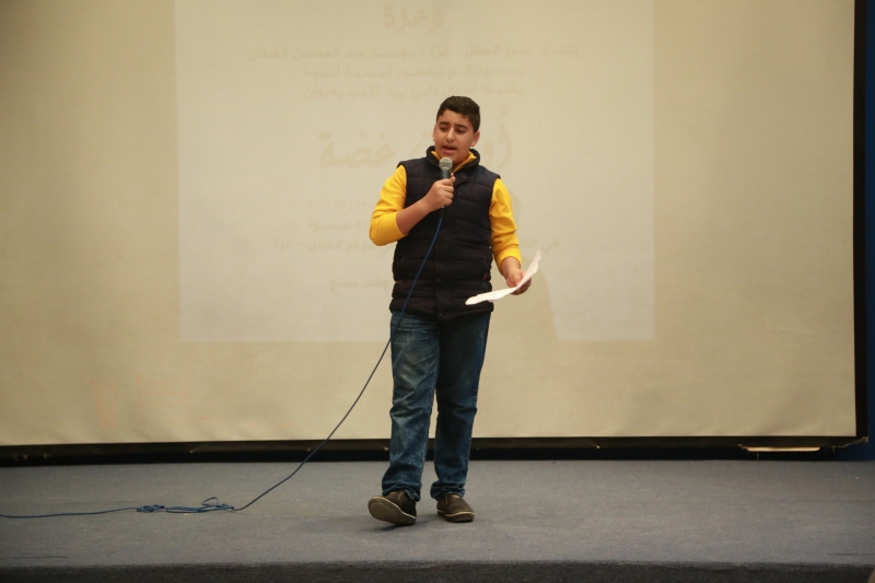 "نحنُ الآن في المساء .. ولكنني من خلال ما كتبت.. سأنقلكم إلى الصباح...". هذا ما قالته ردينة نصر دلول (14 عاماً) قبل إلقائها نصاً أدبياً من كتابتها، مخاطبةً حضور أمسية "أوراق غضة"، التي نظمها مركز الطفل في غزة/مؤسسة عبد المحسن القطان، مؤخراً، وقدّمها أطفال نادي بيت الأدب، وهم باكورة جديدة زهّرت أعضاءً جددًا انضموا للنادي، وشاركوا في الأمسية، إذ ألقوا الشعر والنثر وبعض نصوصٍ من كتاباتهم، بحضور أهالي الأطفال والمهتمين.