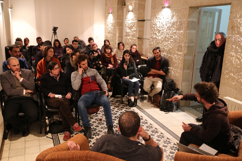نظمت مؤسسة عبد المحسن القطان، الأربعاء 15 شباط 2017، حواراً جمع الفنان الفلسطيني مجد عبد الحميد والفنان البرازيلي جيان سبينا، حول سياق إنتاج الأعمال الفنية باستخدام أعمال الأخير كمادة للنقاش.