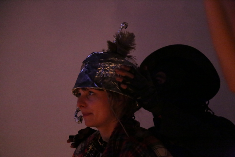 في الغرفة الأولى، عرض موسيقي مسجل وكتابات مضيئة على الحيطان، أما الغرفة الثانية، فيعرض فيها فيديو قصير عن الحوارات والتجارب المختلفة للمجموعة خلال فترة إنتاج العمل، ومن ثم ينتقل الجمهور إلى الغرفة الثالثة، حيث يوجد طبيبان غريبا الأطوار، يعاينان الجمهور بتعريضه لصدمة حسية، وأخيراً إلى الغرفة الأخيرة حيث يعرض فيديو مصوّر على السقف، يتناول الألوان الكامنة في السواد.