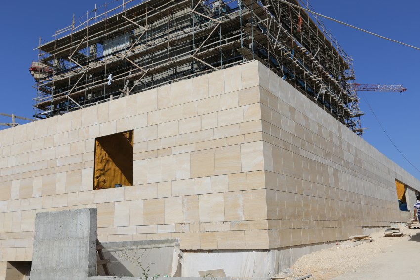 يستمر العمل في التشطيبات الخارجية لمبنى مؤسسة عبد المحسن القطان الجديد، الواقع في حي الطيرة برام الله، حيث انتهى تركيب الجسور الحاملة لشرائح الألمنيوم الطولية التي تحيط بالبرج الرئيسي، كما انتهى تركيب ألواح الزجاج من الجهتين الشمالية والجنوبية للبرج، إضافة إلى استمرار تركيب الحجر على الجدران الخارجية وتهيئة مدخل السيارات.