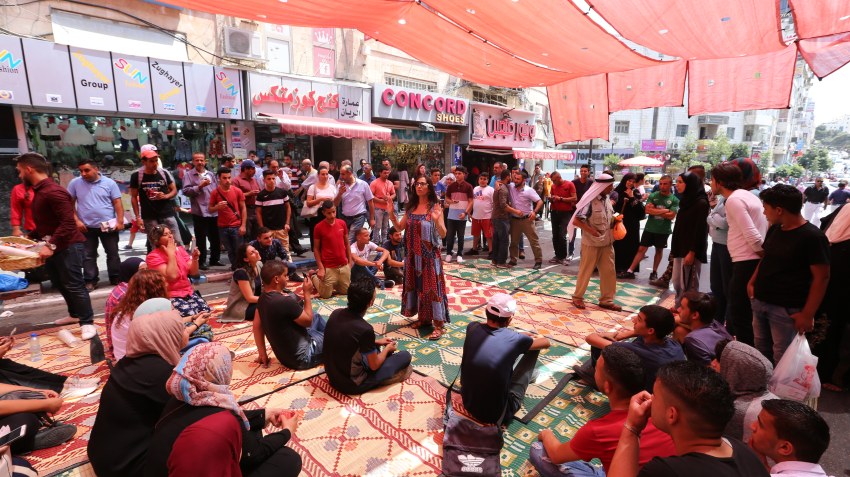 "شطحة" في قلب رام الله، وتحديداً في شارع بنت جبيل، نظمها البرنامج العام في مؤسسة عبد المحسن القطان بالشراكة مع بلدية رام الله ضمن فعاليات مهرجان "وين عَ رام الله"، من خلال العمل مع مجموعة من الحكائين في مجموعة "حكايا"، وعدد من الموسيقيين، منهم الفنانان شادي زقطان ونور الراعي، مع زوار رام الله والمقيمين فيها الذين رووا قصصاً حول علاقتهم بالمدينة.