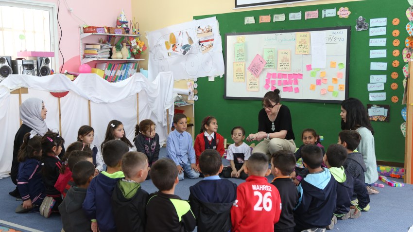 This year’s Exchange Programme was implemented by a team of ERDP members, including researchers, coordinators, documenters, and translators. Membership on the team also included British teachers Lisa Hinton, Sebastian Benney, and Richard Kieran. In collaboration with 15 educators who participated in the Early Childhood Professional Development Programme, educators Hiba al-Maliki, Aya Badran, and Hind Arouri implemented the Exchange Programme at their KGs.