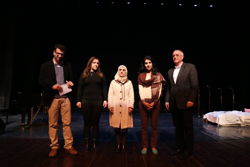 The announcement was followed by the musical performance Mire (directed and designed Amir Nizar Zuabi, and composed by Faraj Suleiman). Four singers and 11 actors participated in the performance. Mire is a reflection of recent conditions the Arab world has seen as a result of wars and conflicts.