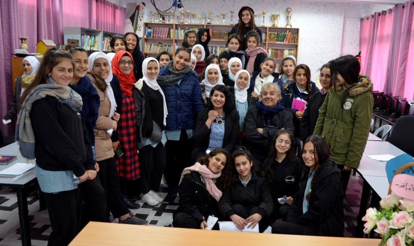 .The writer Samah al-Sab’awi and poet Razan Banourah met with two groups of female students from the al-Qubeiba Secondary school for girls from the Jerusalem province, and al-Awdeh secondary school in Bethlehem. The events took place on the third and fifth of March respectively, as part of the programme “Authors in School” implemented by the A.M. Qattan Foundation Library, in cooperation with the Arts Unit of the Ministry of Education and Higher Education, or directly through the schools themselves.