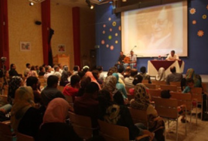To mark the passing of a year since the death of poet Mahmoud Darwish, an evening of poetry readings was held at QCC, introduced by Khaled Jumaa and singer Youssef Abu Dahi who performed some of Darwish's poems set to music.