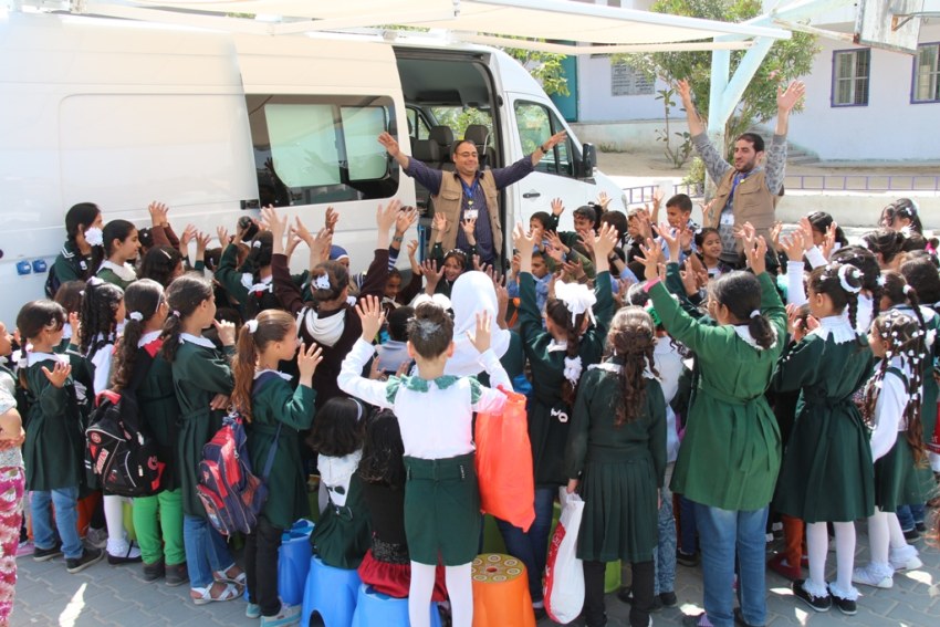 توجّه باص المكتبة المتنقلة صباح أمس الثلاثاء 21/ 4 إلى أطفال مدرسة شجرة الدر الأساسية في منطقة بني سهيلا بمحافظة خان يونس جنوب قطاع غزة، محمّلاً بـالكتب والقصص، ومُعلناً عن إطلاق أنشطة مشروع "المكتبة المتنقلة"، الذي ينفذه مركز القطان للطفل بالشراكة مع بنك فلسطين.