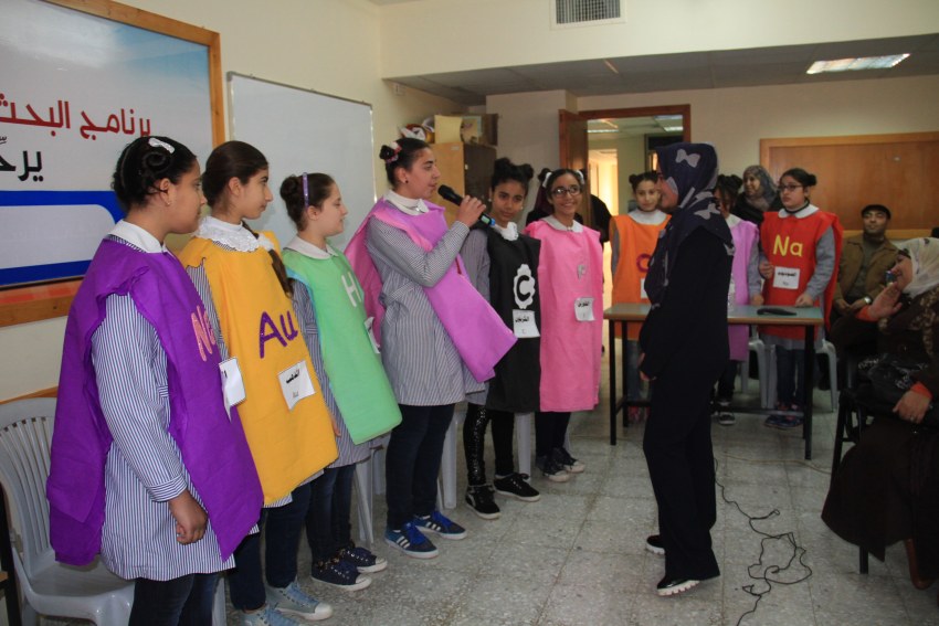 كان ذلك ضمن عرضٍ مسرحيّ كوميديّ قصير حول الجدول الدوريّ، قدّمته طالبات مدرسة بنات أسماء الإعداديّة "ب"، بإشرافِ معلّمتهنّ ابتسام عودة، خلال حفل تكريمٍ للمشاركين في فعاليّات مهرجان أيام العلوم والأفلام العلميّة 2016، الذي نظّمه برنامج البحث والتطوير التربويّ/مؤسسة عبد المحسن القطّان في غزّة، الاثنين 26/12/2016.