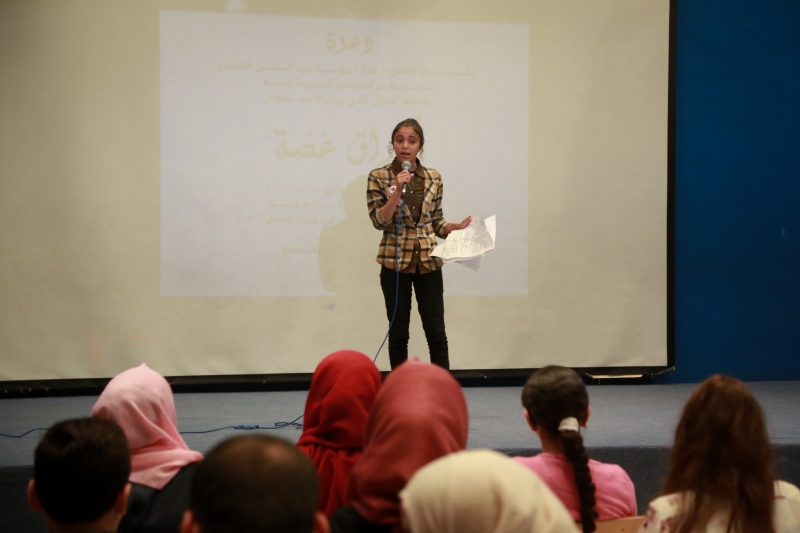 "نحنُ الآن في المساء .. ولكنني من خلال ما كتبت.. سأنقلكم إلى الصباح...". هذا ما قالته ردينة نصر دلول (14 عاماً) قبل إلقائها نصاً أدبياً من كتابتها، مخاطبةً حضور أمسية "أوراق غضة"، التي نظمها مركز الطفل في غزة/مؤسسة عبد المحسن القطان، مؤخراً، وقدّمها أطفال نادي بيت الأدب، وهم باكورة جديدة زهّرت أعضاءً جددًا انضموا للنادي، وشاركوا في الأمسية، إذ ألقوا الشعر والنثر وبعض نصوصٍ من كتاباتهم، بحضور أهالي الأطفال والمهتمين.
