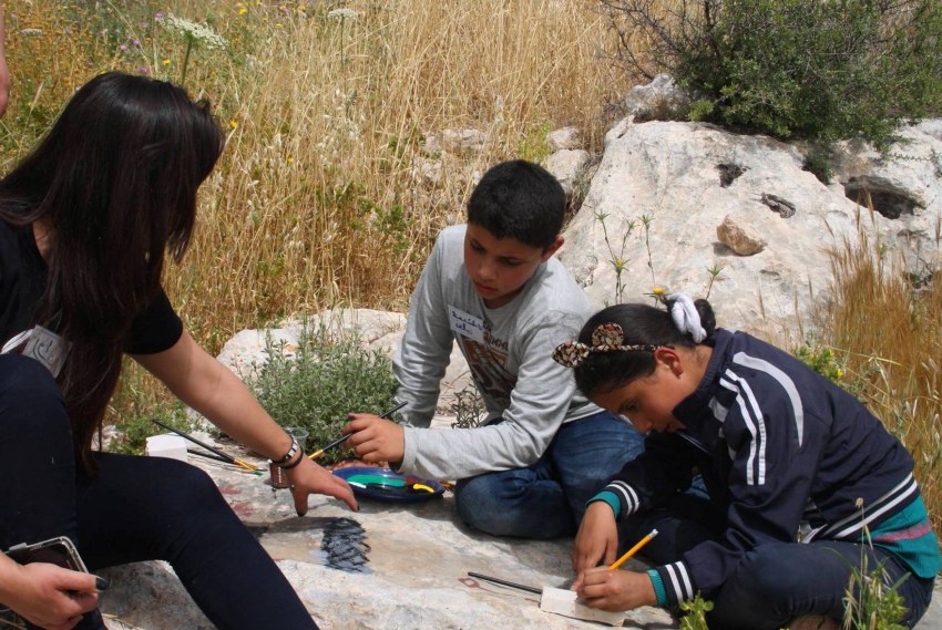 وبقدر ما كان في الحوار من دمجٍ للتجارب والمعرفة؛ كان لا بدّ من توثيق التجربة، فقام كلّ مشارك بانتقاء حجر؛ الذي يعد رمزاً للأرض وللنضال الفلسطيني، ثم بعد تجميع الحجارة بدأ المشاركون برسم أفكارهم عن الأرض بالريشة والألوان، كأن يرسم شاب جملاً يعبر به عن منطقة العراقيب الصحراوية المهدّدة بالهدم وبترحيل أهلها، وآخر يرسم شجر زيتون، وأخرى ترسم مفتاحاً أو خريطة الوطن، وطفل يرسم جدار الفصل العنصري، وغيرها الكثير من الرسومات المحمّلة بالمعاني.