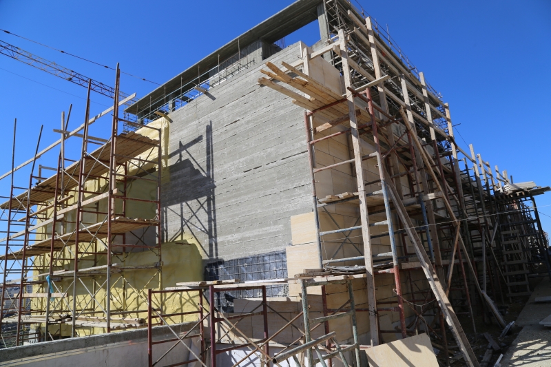 كما تتم حالياً تغطية الأرضيات المكشوفة بمواد عازلة، وفي الداخل بدأت مرحلة التبليط، حيث يتم استخدام بلاط حجري.  واستمرت إجراءات عزل الجدران بمواد مضادة للرطوبة والماء والحرارة.