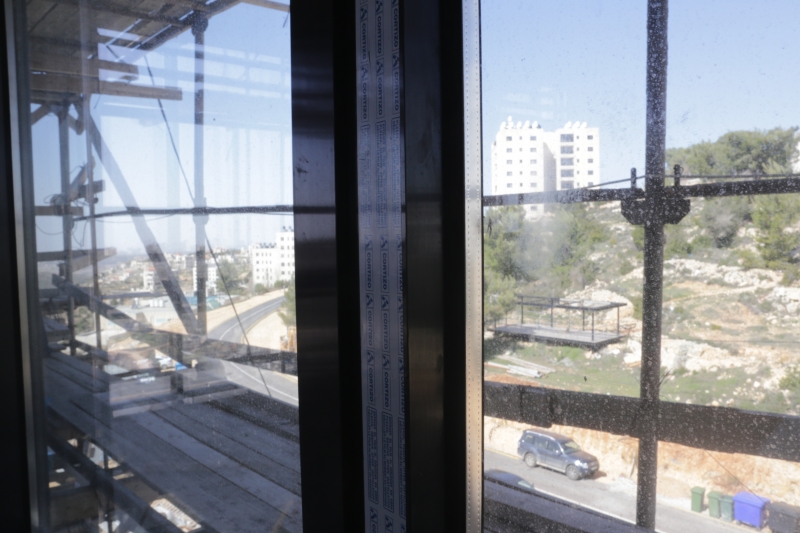 كما بدأت مرحلة تركيب الحديد والألمنيوم والزجاج في جدران المبنى، ويتميز الزجاج المستخدم بأنه شفاف يسمح بمرور 60 % من الضوء وينقي 28% من الإشعاعات الشمسية الضارة.