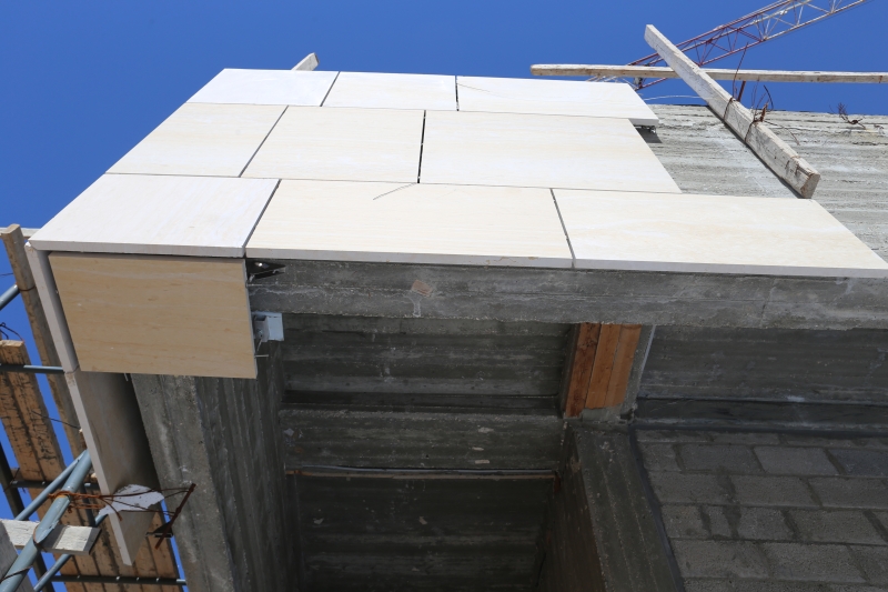 وتتم حالياً تغطية الأرضيات المكشوفة في التراس والحدائق الخارجية بمادة عازلة، وأخرى مضادة لامتداد الجذور في الحدائق، فيما تم الانتهاء من تغطية ساحة المطعم الخارجية بمادة عازلة للحرارة والرطوبة والبنية التحتية لنوافير المياه التي ستلطف جو التراس.