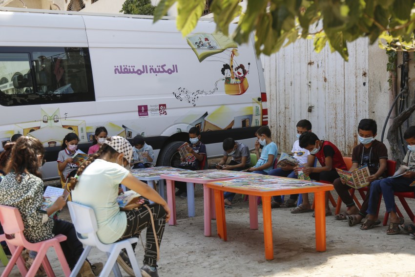 وتعمل "المكتبة المتنقلة" في خمسة مناطق صديقة في قطاع غزة: المغراقة، رفح، المغازي، بيت لاهيا، السّموني، منذ انطلاق فعاليات "نحب الحياة" الصيفية 2021.