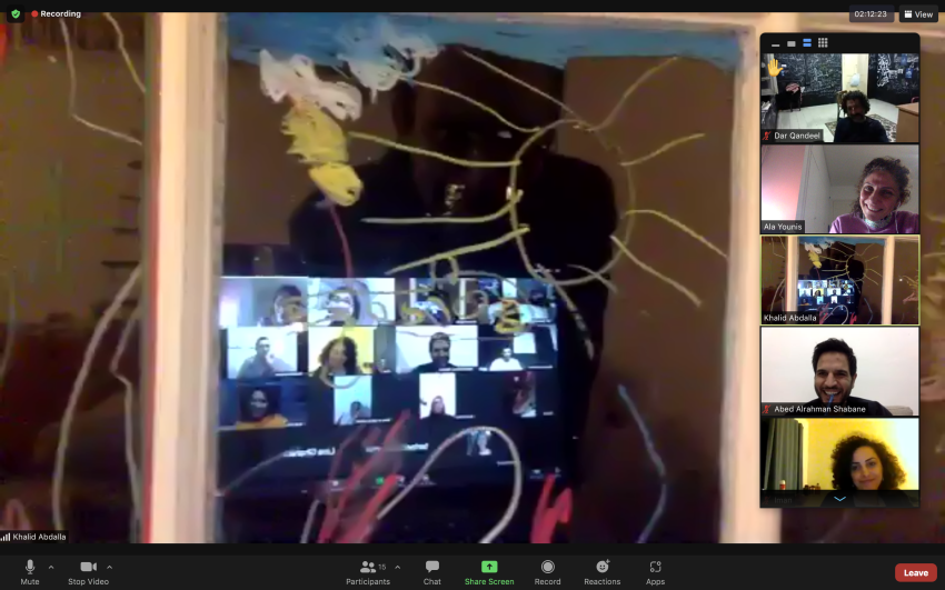 Curator Ala’ Younis moderates the “Unprepared” workshop sessions, organised by the A.M. Qattan Foundation through the second round of the “Visual Arts: A Flourishing Field” grant project, funded by the government of Sweden.
