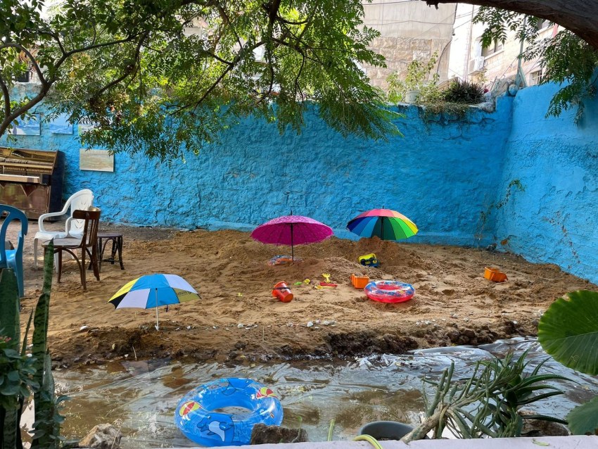 The exhibition showcased these works, including paintings, videos, posters and installations. They were produced through workshops for children, production grants, artist residencies and seminars. Many of the works were also created as part of the “Let’s See” initiative launched by Dar Qandeel in collaboration with the Visual Arts Forum (VAF) during the COVID-19 lockdown. This initiative created a space for families and collectives to discuss that period and express their concerns, boredom and future aspirations through collectively made visual artwork. The exhibition also displays the “Dar Qandeel’s Sea,” built during the “From the Beach of Gaza” online meeting with Shababeek Collective and artists Majdal Nateel and Salman Nuwati, alongside other works about the sea of Gaza painted during the live broadcast of this virtual meeting. The exhibition also showcases mosaic works made by children during the training workshops in Tulkarem and Deir al-Ghusoon.