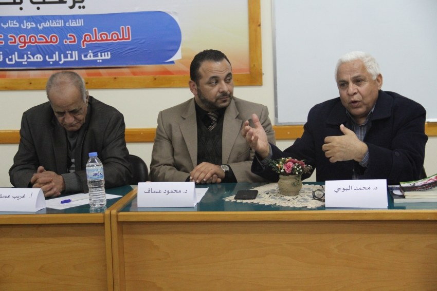 The encounter brought together Mohammed al-Bouji, Professor of Literature and Criticism at the Al-Azhar University, and Ghareeb Asqalani, a novelist. In the presence of Assaf, Al-Bouji and Asqalani discussed and commended the book, which featured more than one literary genre, such as story and thoughts. Al-Bouji and Asqalani invoked many examples of literary teachers, such as Muin Bseiso.