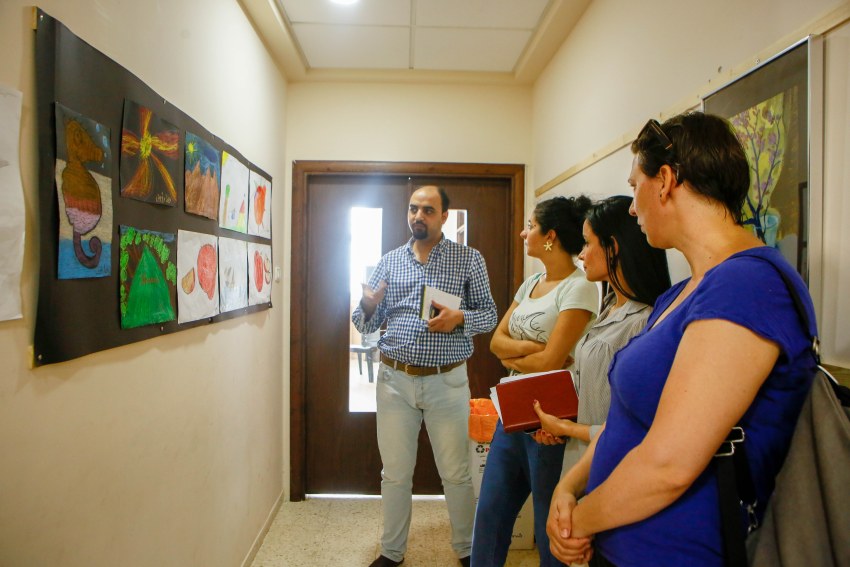 The tour concluded with a visit to the Tamer Institute for Community Education, which is currently implementing its ‘Tales from Palestinian Art’ project. This activity seeks to develop young adult literature and the visual arts field for children in Palestine. Renad Qubbaj, Director General of the Tamer Institute, made a presentation on the Institute and its goals since it was founded in 1989. Haneen Khairi, Programme Manager, and Alaa Karman, Project Coordinator, presented an update about the progress of the project to produce and promote stories for children that highlight the lives of four prominent Palestinian artists. An advisory committee has approved scripts for the stories and in collaboration with Palestinian and other Arab artists and writers work is now in progress to prepare relevant paintings. Discussion revolved around the training opportunities the project offers to around 40 artists. In collaboration with artist Amal Karzai, the Tamer Institute is now also offering an advanced training course on storyboarding as well as 2D and 3D drawing.