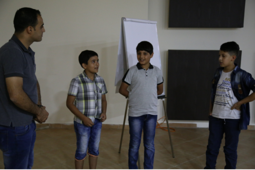 Mohammed Hamed, Ahmed Emad and Mohammed Firas, fourth grade students at the Bir Quza Basic School, passionately talked about their film The School Trip. The film tells the story of a student who does not have money for the trip. In secret, he works every day before he goes to school. Without being noticed, the school headmaster helps the student. He gives a financial award to the student for his outstanding achievement. Finally, the student can go on the trip for free.