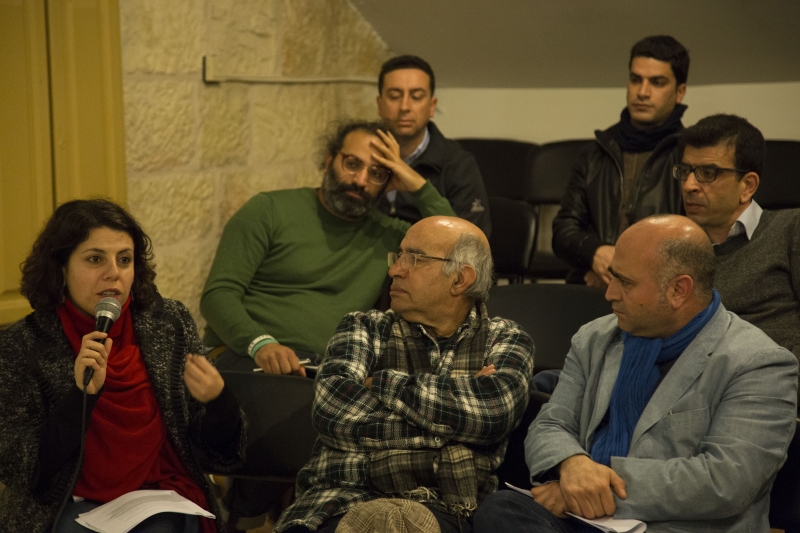 Dr. Abaher al-Saqqa, a lecturer at Birzeit University, noted that the exhibition’s title is both catchy and problematic. He further explained, “Catchy in that it’s an outside-the-box idea; problematic in terms of the nature of the state it addresses.” During the discussion, al-Saqqa also called to “topple the ‘development from the top’ paradigm and implement the subcontracting model from within society itself.”